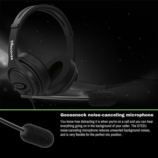 Discover D722U Over-Ear Noise Cancelling USB Wired Headset For Computer (Boomstick)